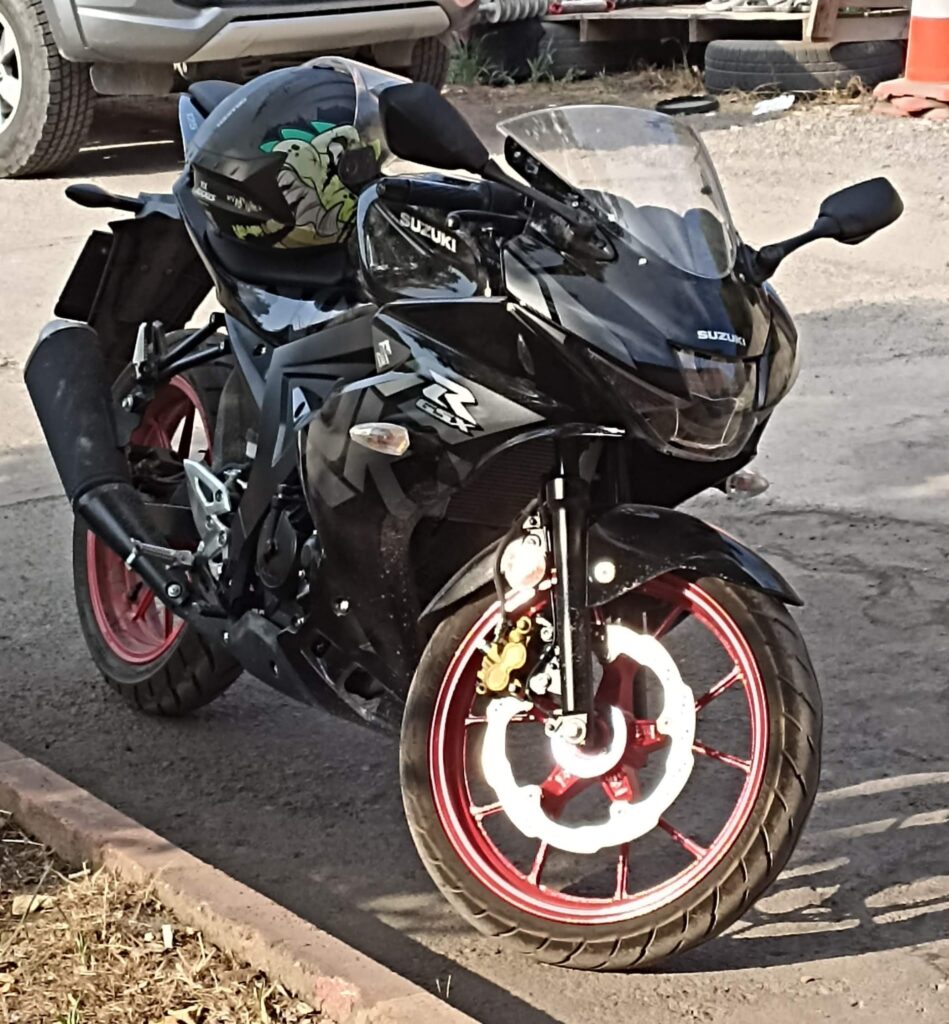 Resimde de göreceğiniz gibi bu GSX-R modelinin kaç cc olduğu artçı koltuğunun yanına stickerla yazılmaktadır. Resimdeki modelimiz 125 cc olan modeldir. Şase, kasa ve grenaj olarak 250 cc modelle aynıdır.